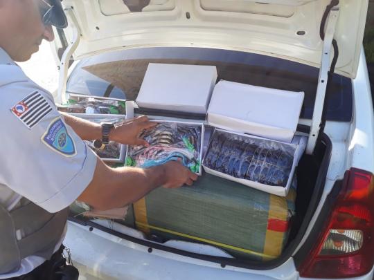 Durante a abordagem, o motorista ficou nervoso o que levou a uma busca mais minuciosa dentro do veículo.