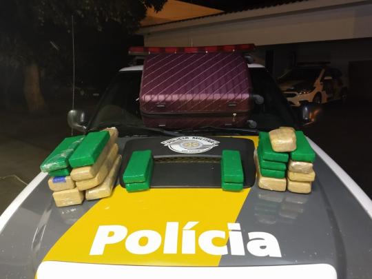 Em fiscalização de trânsito o policiamento rodoviário abordou o ônibus de linha regular, com itinerário Campo Grande (MS) – Campinas (SP), e durante vistoria localizou no bagageiro externo uma mala, devidamente etiquetada, com 21 tabletes de maconha dentro.