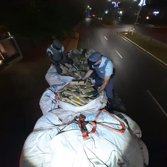 DRACENA - Após troca de informações de inteligência entre o CIIOSP-MISSÃO REDENTOR e Equipes do Policiamento Rodoviário (TOR), foi realizada a abordagem do caminhão M.Benz, de Rio das Pedras/SP, contendo sucata plástica, oriundo de Cuiabá/MT e após minuciosa vistoria, foi constatado que o veículo transportava grande quantidade de maconha entre a carga, distribuídos em forma de tijolos.