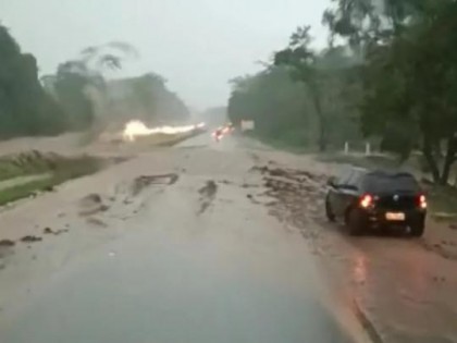 De acordo com as informações repassadas pela Polícia Militar Rodoviária, a lama foi arrastada pela enxurrada para o trecho que possui pista dupla.