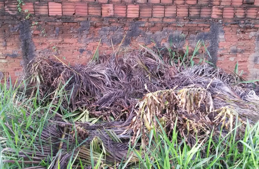 Diz que já procurou a Prefeitura, mas o problema persiste porque pessoas jogam restos de podas de coqueiros e outras plantas em área vizinha à sua casa. Também diz que o local está esquecido e como parte da rua não é pavimentada o mato cresce.