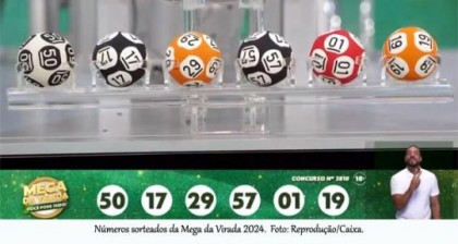 Dezenas sorteadas foram 01-17-19-29-50 e 57. Prêmio total é R$ 635.486.165,38 e cada aposta vai levar R$ 79.435.770,67.