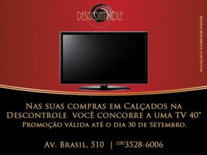 Nas suas compras em calçados na Descontrole Modas você concorre a uma de TV 40”.