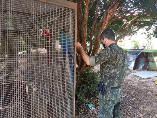 Os policiais constataram a existência de dois macacos-prego, uma arara canindé e uma arara vermelha, mantidos em cativeiro.