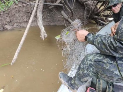 65442Fiscalização apreende redes de pesca, malhas e anzóis de galho armados irregularmente no Rio Aguapeí, em Lucélia