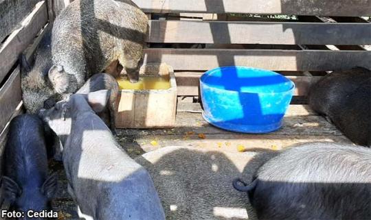 A equipe encontrou os javaporcos mantidos confinados em um chiqueiro.