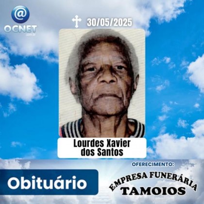 Com profundo pesar, comunicamos o falecimento de Lourdes Xavier dos Santos, ocorrido nesta sexta-feira, dia 30 de maio de 2025, na cidade de Osvaldo Cruz (SP), aos 84 anos de idade.