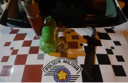 Dentro do veículo foram encontrados uma garrafa de bebida alcoólica e um facão.