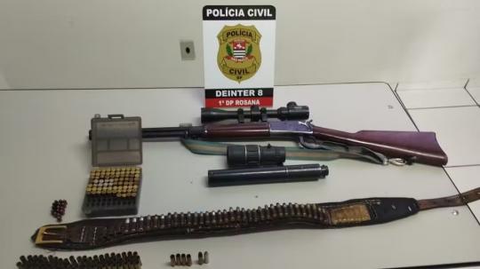 66374Armas e munições são apreendidas em casa de suspeito de violência doméstica, em Rosana
