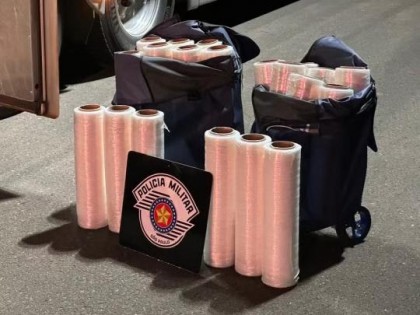 Durante a vistoria veicular, os militares localizaram no compartimento de carga, 52,490 quilos de cocaína distribuídos no interior de 25 bobinas de filme plástico, que estavam armazenadas em algumas bolsas, pertencentes a dois passageiros de nacionalidade boliviana.