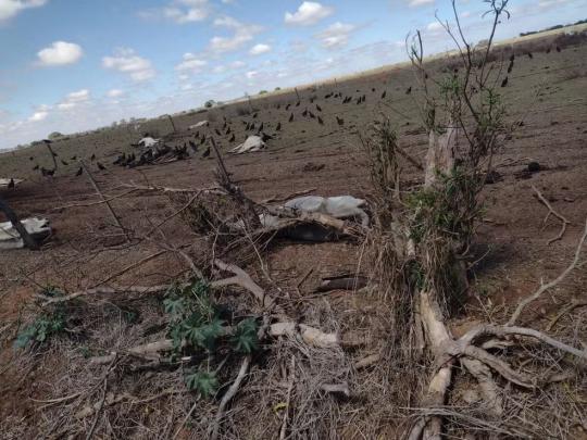 GUARARAPES - Pelo menos 17 bovinos morreram em uma propriedade por falta de alimento em Guararapes (SP).