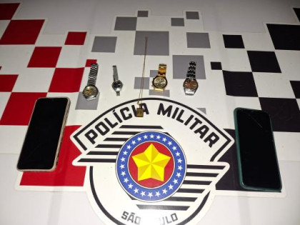 Ao perceberem a aproximação da viatura, os suspeitos tentaram fugir, mas foram cercados com o apoio de outras equipes. Durante a abordagem, os policiais constataram que um dos abordados, um adolescente de 17 anos, usava um relógio da marca Orient, idêntico ao que havia sido furtado da residência da vítima. Questionado, o jovem admitiu que o objeto era proveniente do crime.