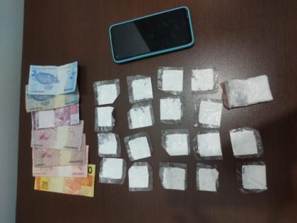 O indivíduo, que era passageiro de um veículo, ao perceber que seria abordado, arremessou algo para fora do carro. Após a verificação dos agentes, foram encontrados 16 invólucros de cocaína. Durante a revista pessoal, também foram localizados dois invólucros adicionais com a mesma droga, além de R$ 49,00 em dinheiro.