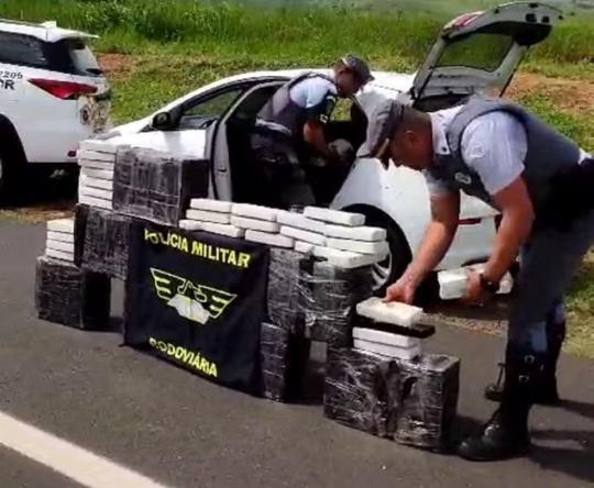 Durante a fiscalização, os agentes encontraram 279 tabletes de maconha no porta-malas e no banco traseiro do veículo. Ao todo, foram contabilizados 227,450 quilos do entorpecente.