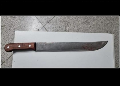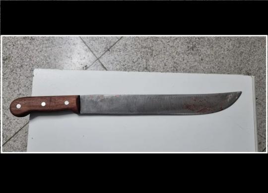 O facão foi localizado e apreendido pelos policiais militares em cima de um armário na casa do agressor.