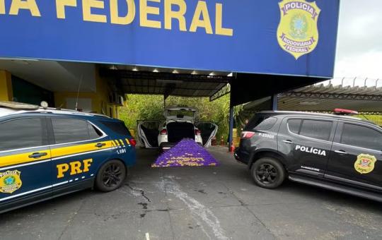 Droga foi encontrada após uma abordagem na base da PRF no Km 259 da Rodovia Transbrasiliana (SP-153).