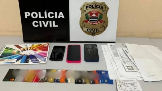 Foi cumprido um mandado de busca e apreensão na circunscrição da Delegacia de Polícia de Rancharia-SP, residência da investigada com a apreensão de documentos, cartões bancários de diversas bandeiras, em nome dos investigados, três aparelhos celulares, comprovantes de sorteio e um caderno de cartografia com anotações.