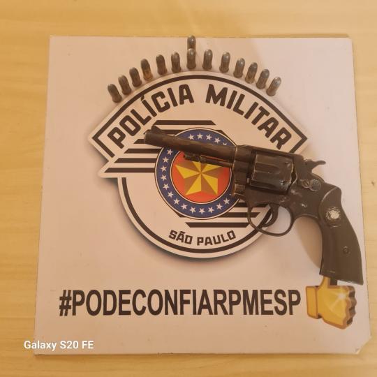 Dentro de uma mochila os policiais encontraram um revólver calibre 32, com numeração raspada e com seis munições e ainda outras 14 sobressalentes.