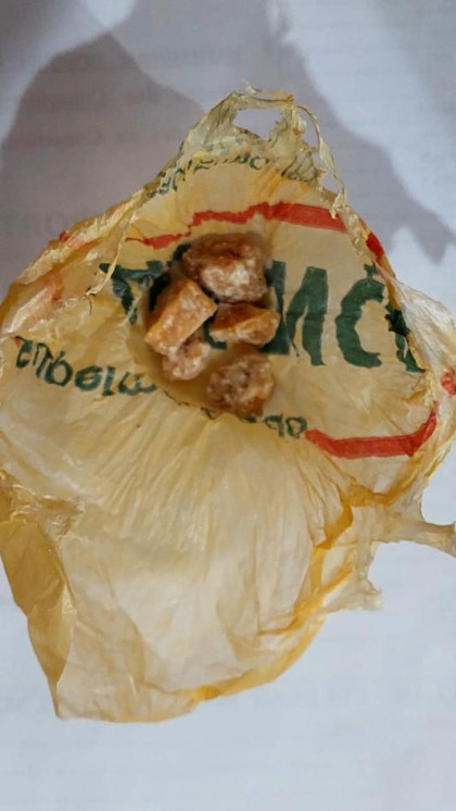 Durante a busca pessoal, nada de ilícito foi encontrado com ele, porém, ao verificar o objeto arremessado, os policiais constataram tratar-se de uma porção de substância semelhante ao crack.