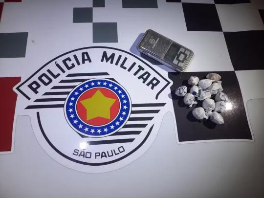 Após buscas, os militares localizaram uma sacola plástica, dentro da qual havia uma balança de precisão e dois potes plásticos com o total de 13 porções de crack.
