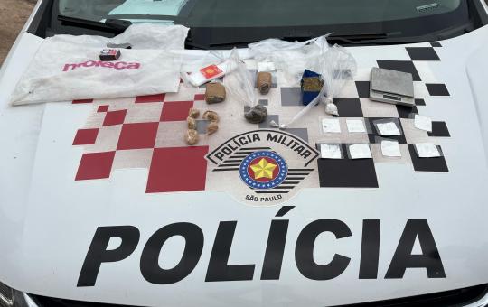 Com ele, foram apreendidas porções de crack, cocaína e maconha, além de uma balança e materiais para embalar drogas.