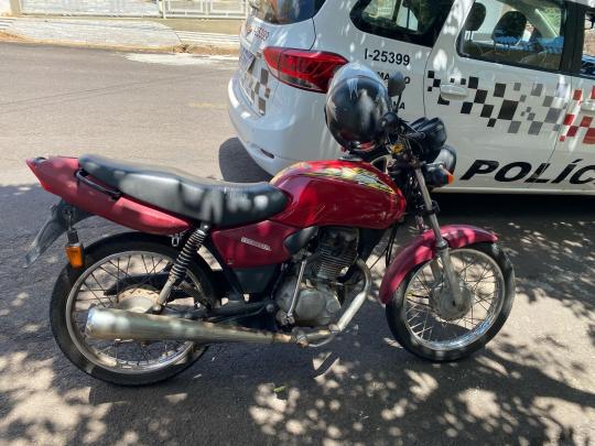 Após diligências, os policiais localizaram a motocicleta estacionada na Rua Marechal Rondon, com a chave no contato e o capacete dependurado no guidão. O veículo apresentava danos na seta do lado direito e estava sem a placa de identificação.