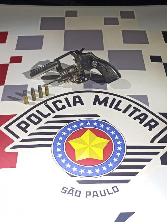 Após uma busca pessoal, nada de ilícito foi encontrado com ele, porém no interior do carro foi localizado um revólver calibre 32, municiado com 4 cartuchos, sendo dois "picotados" e dois intactos.