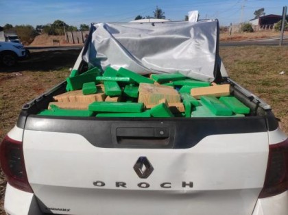 Os policiais rodoviários faziam fiscalização de rotina, quando pararam um Oroch Renault e em sua carroceria estava lotado de maconha.