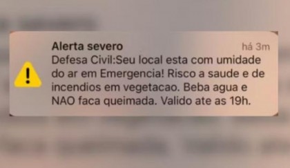 Regiões como São José do Rio Preto e Araçatuba receberam mensagens; umidade do ar chegou a 12% em alguns municípios