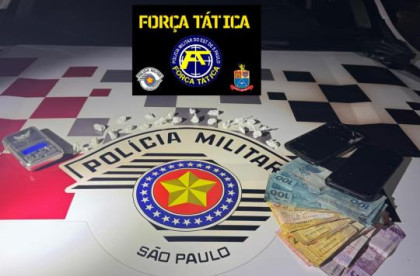 A ação foi da Força Tática, após denúncias de venda de drogas no bairro Lucélia.