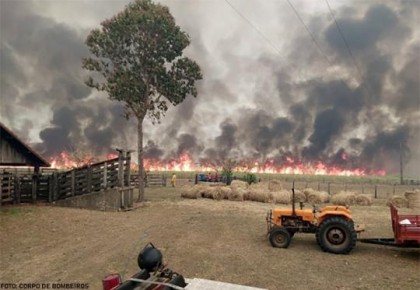 Em uma das propriedades o fogo chegou até próximo da sede.