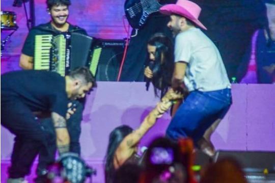 Cantora trombou acidentalmente com influenciador chamado ao palco e foi ao chão